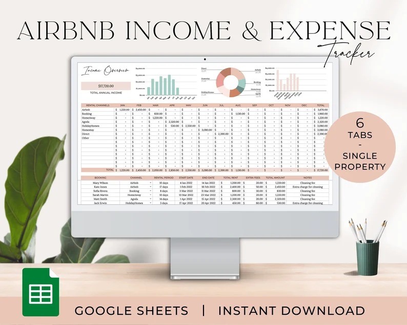 Airbnb Rental & Expense Spreadsheet Tracker