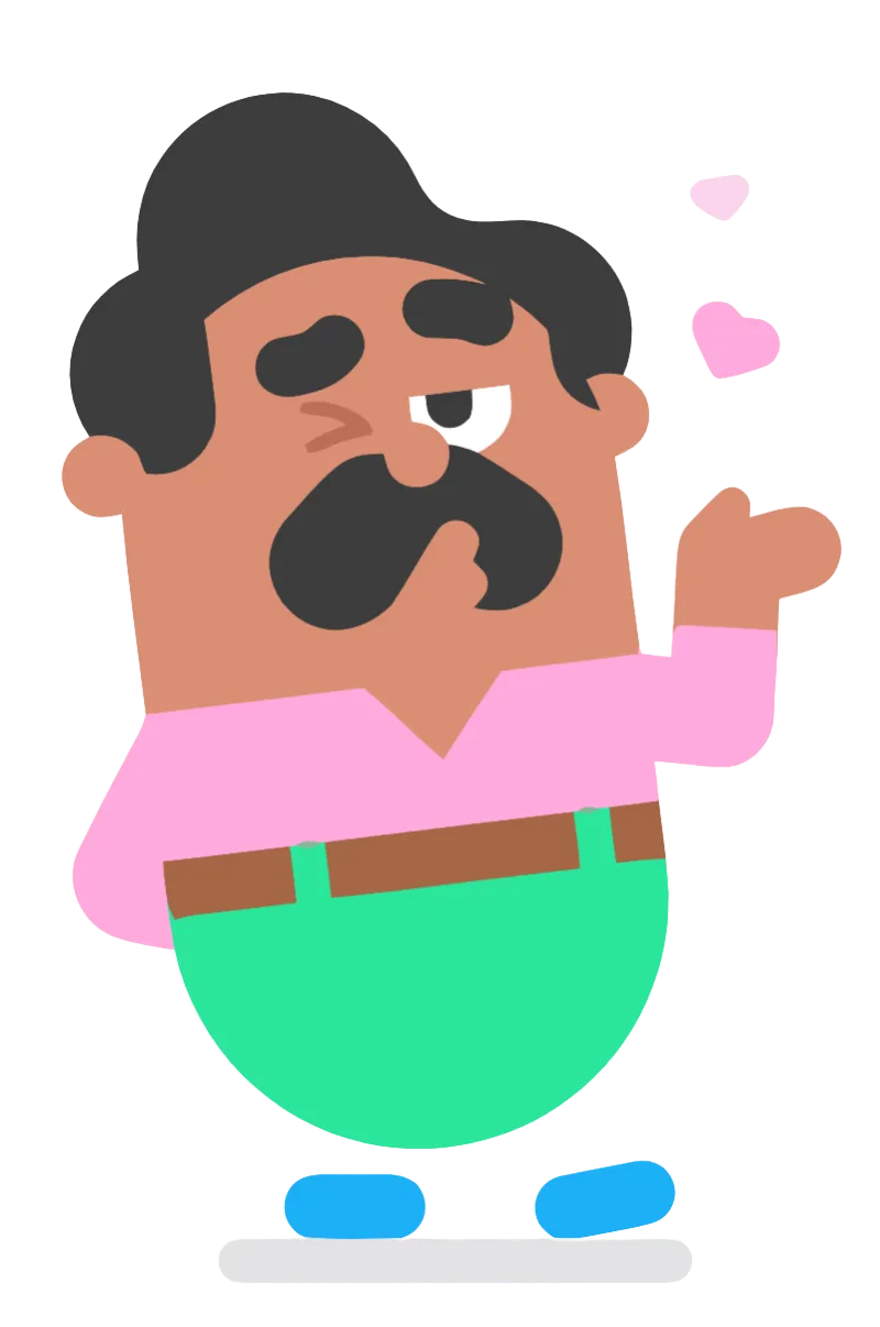 Bea, lin, and oscar are part of the duolingo cast, representing the lgbtq+ community. He is distinguished by his moustache and love for the arts.