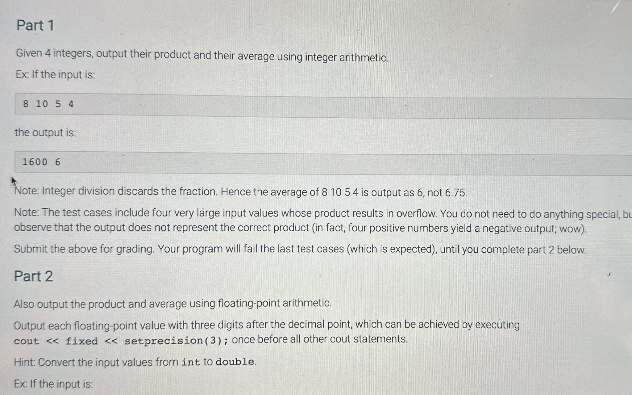 Solved Part 1Given 4 integers, output their product and